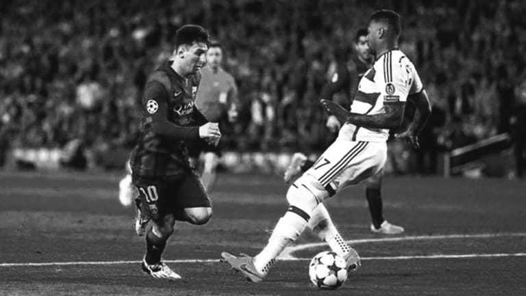 Boateng bromea 5 años después: Quisiera verlos a ustedes defenderlo, sabiendo de antemano que no existe alguien capaz de detener al pibito rosarino cuando se perfila de frente con la pelota pegada al pie.